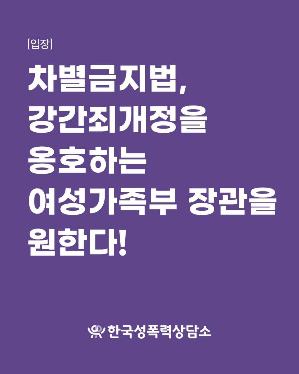 차별금지법, 강간죄개정을 옹호하는 여성가족부 장관을 원한다