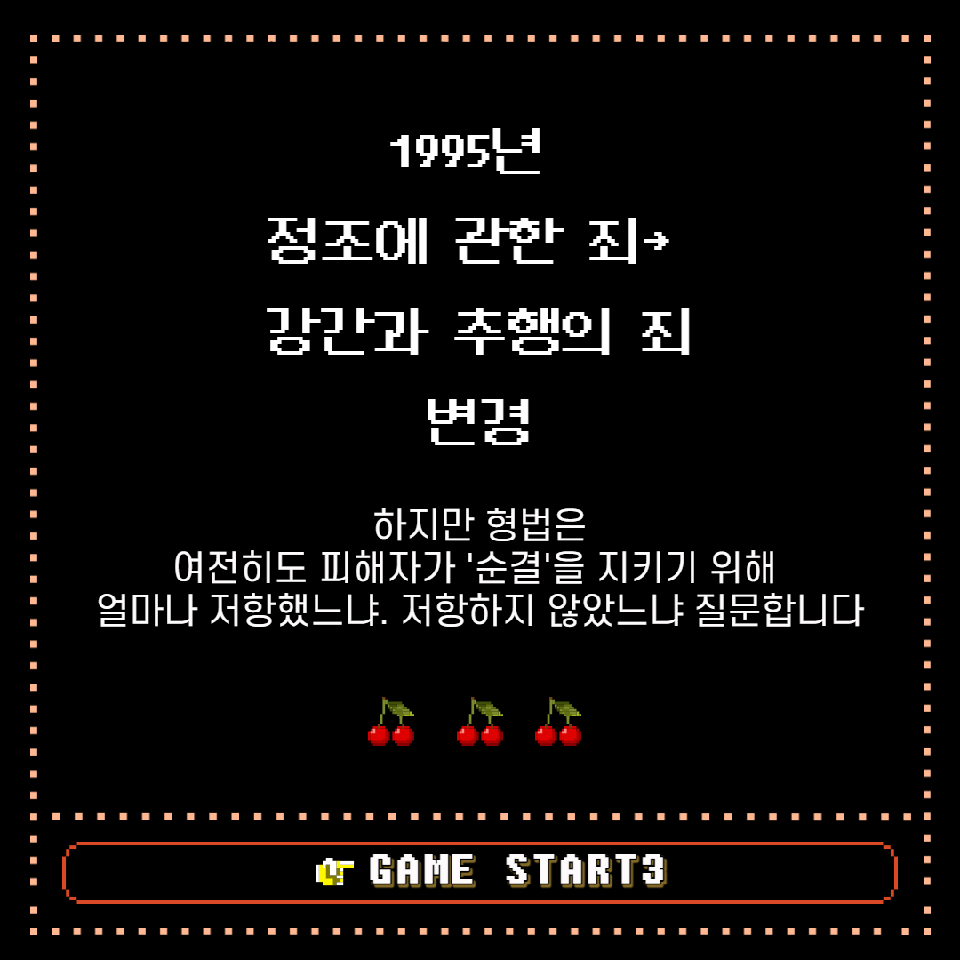 하지만 형법은 여전히도 피해자가 '순결'을 지키기 위해 얼마나 저항했느냐. 저항하지 않았느냐를 질문합니다.