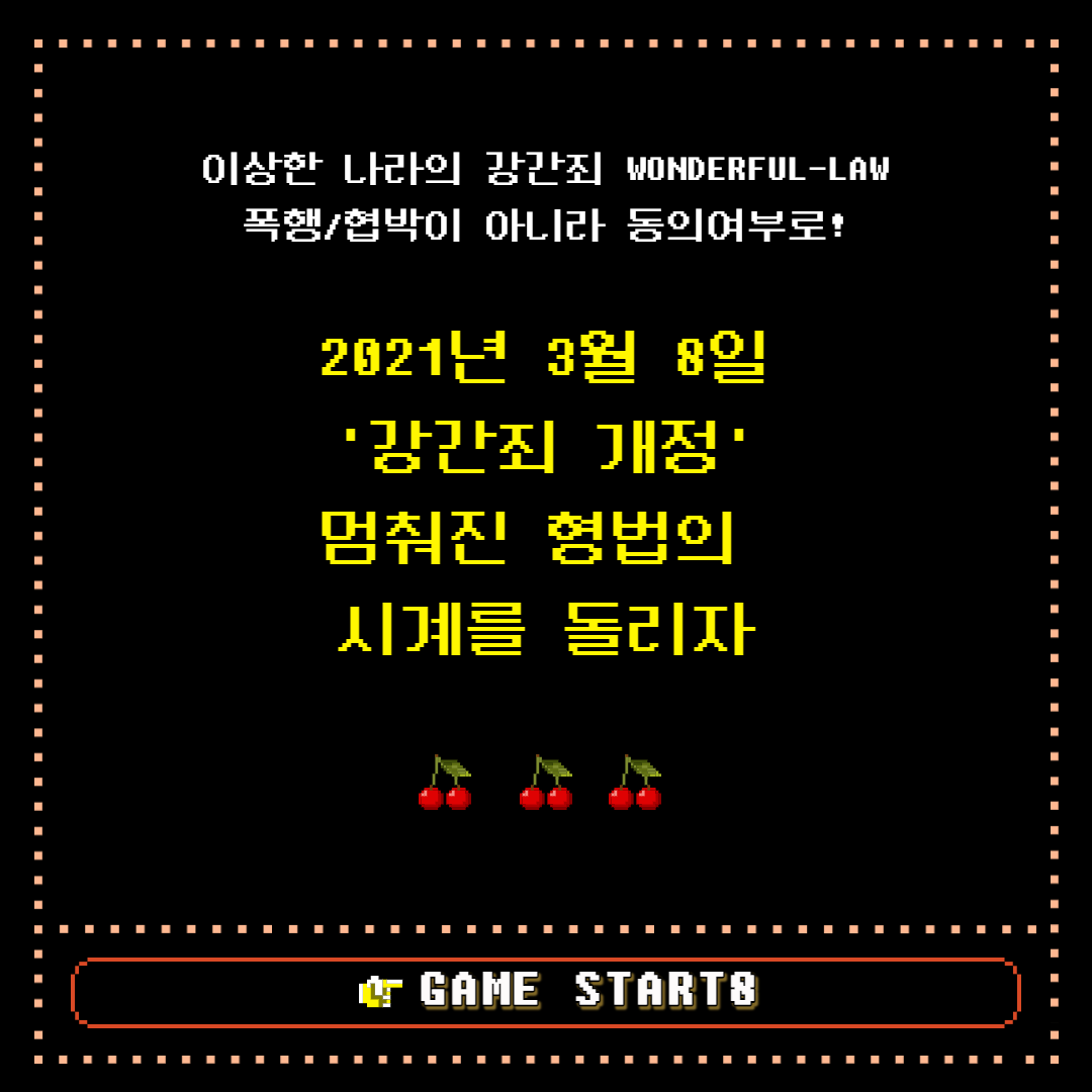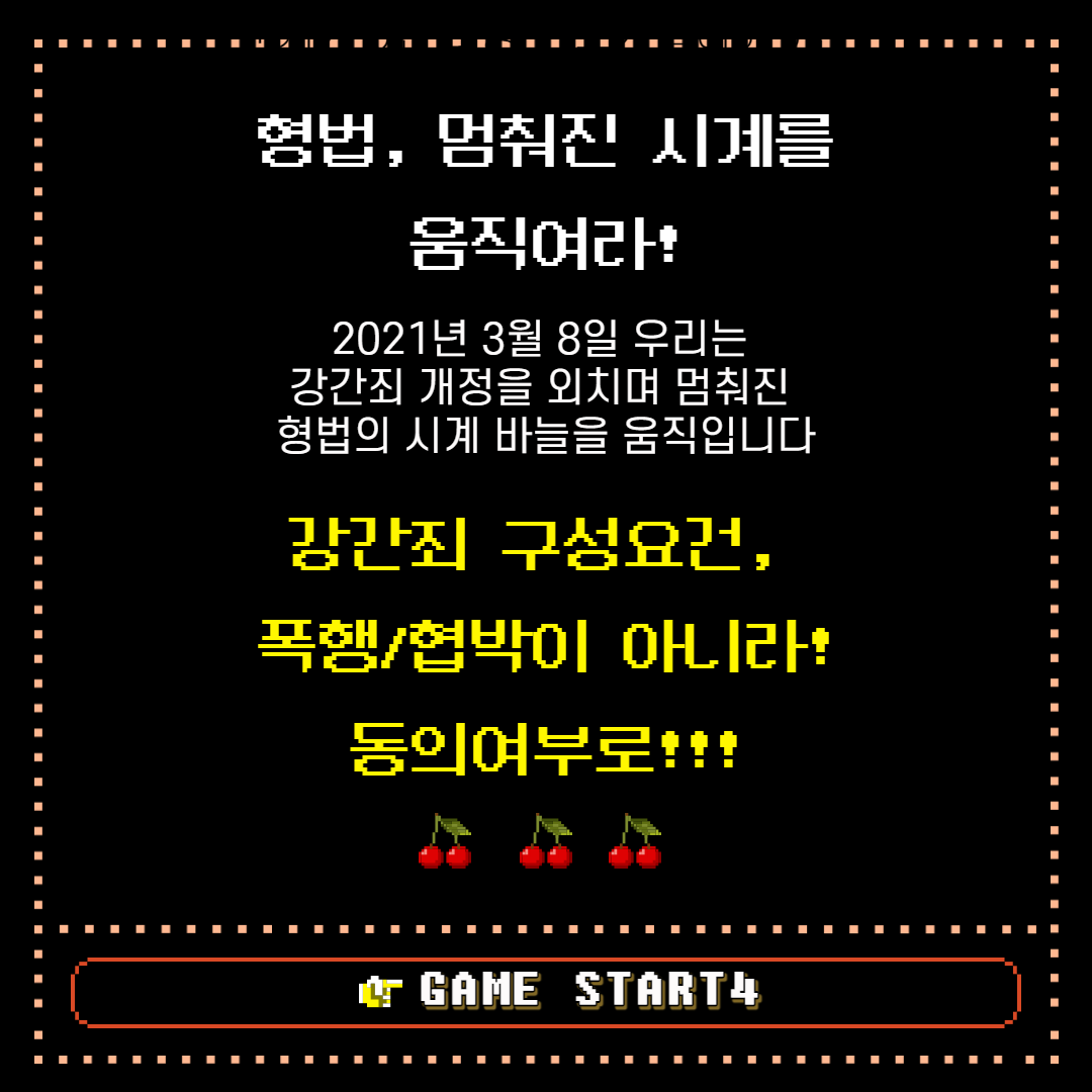 2021년 3월 8일 우리는 강간죄 개정을 외치며 멈춰진 형법의 시계 바늘을 움직입니다.