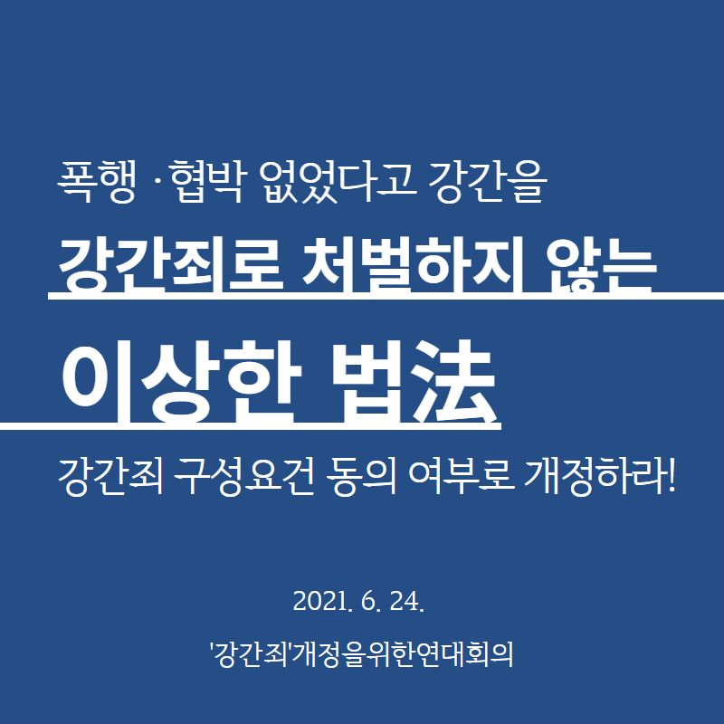 국회는 하루속히 강간죄 구성요건을 동의 여부로 개정하라!