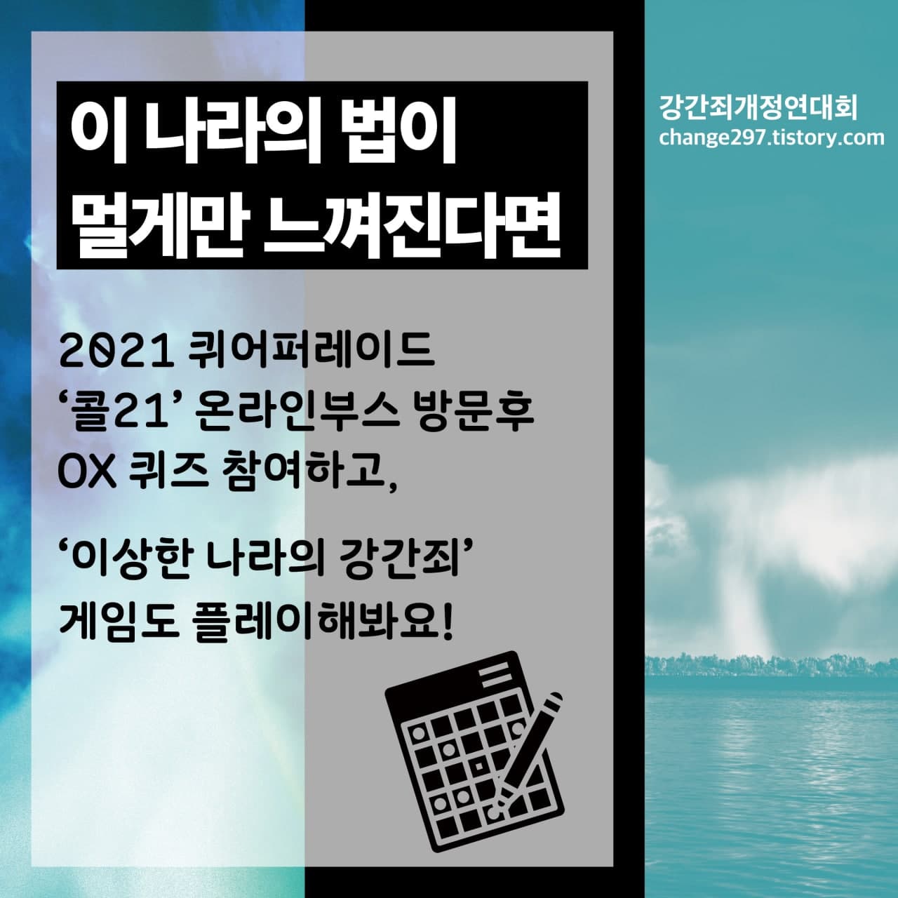 | [연속교육(2021.08.17-24] 강간죄, 우리가 바꾸자, 지금 여기에서! (0) | 2021.08.17 |