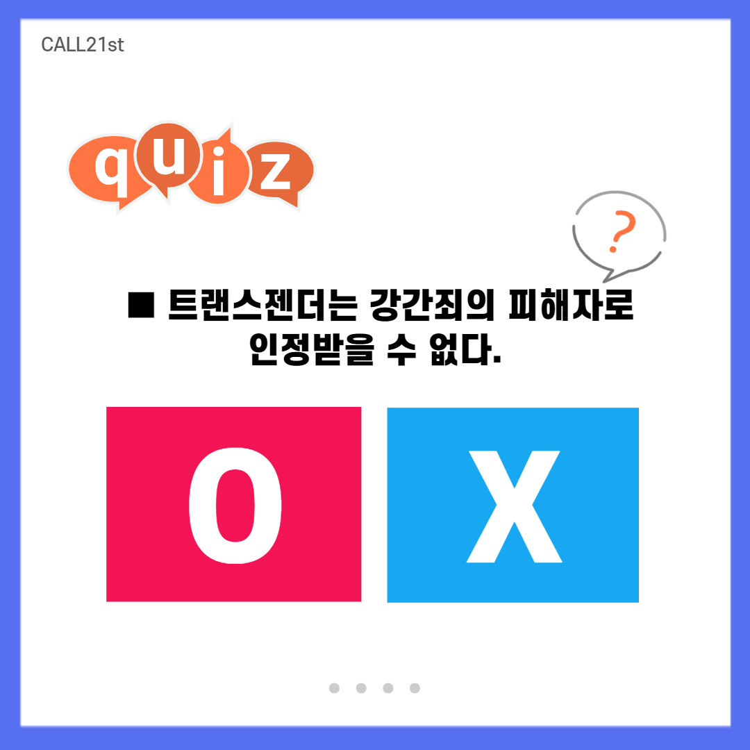 Quiz. 트랜스젠더는 강간죄의 피해자로 인정받을 수 없다?