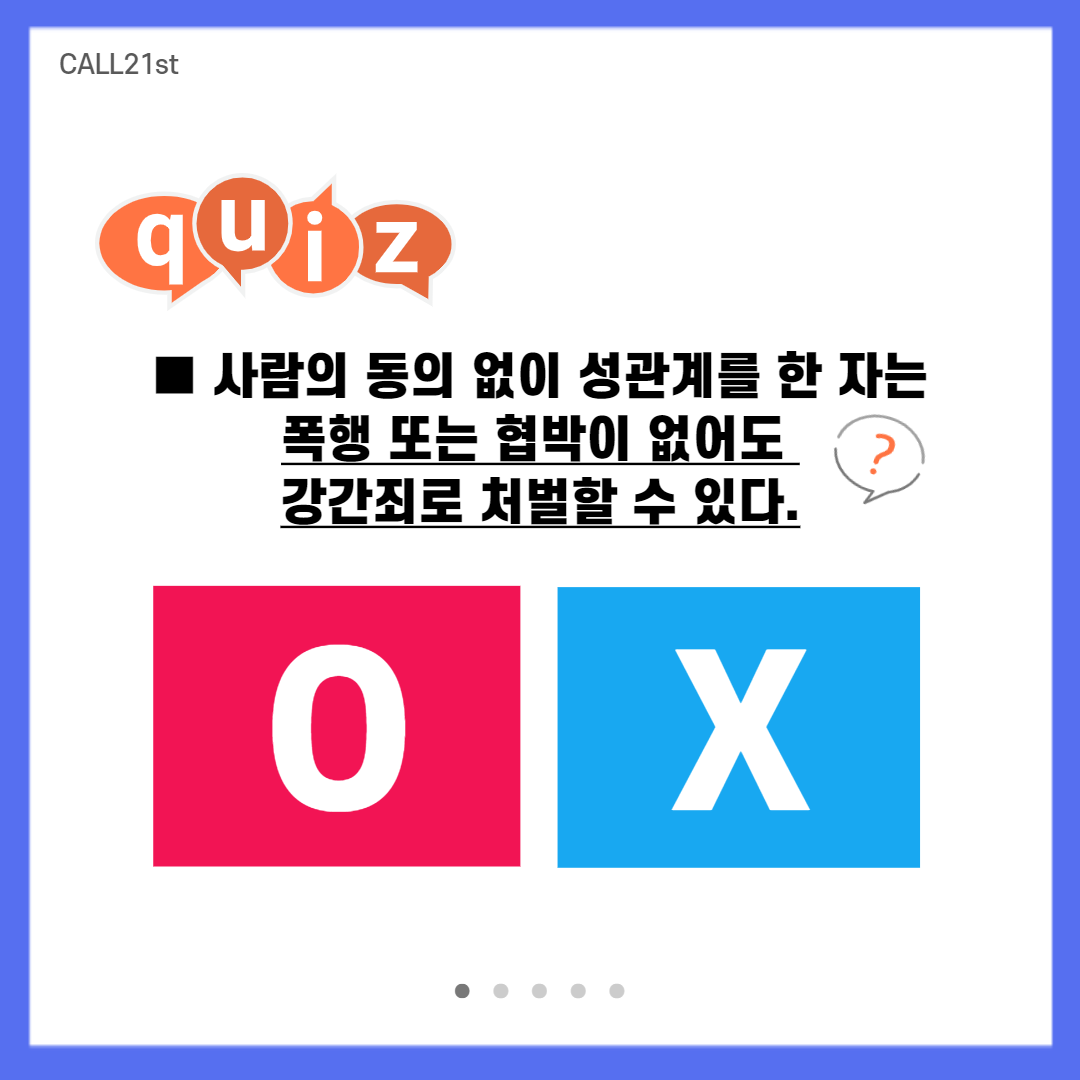 Quiz. 사람의 동의 없이 성관계를 한 자는 폭행 또는 협박이 없어도 강간죄로 처벌할 수 있다?