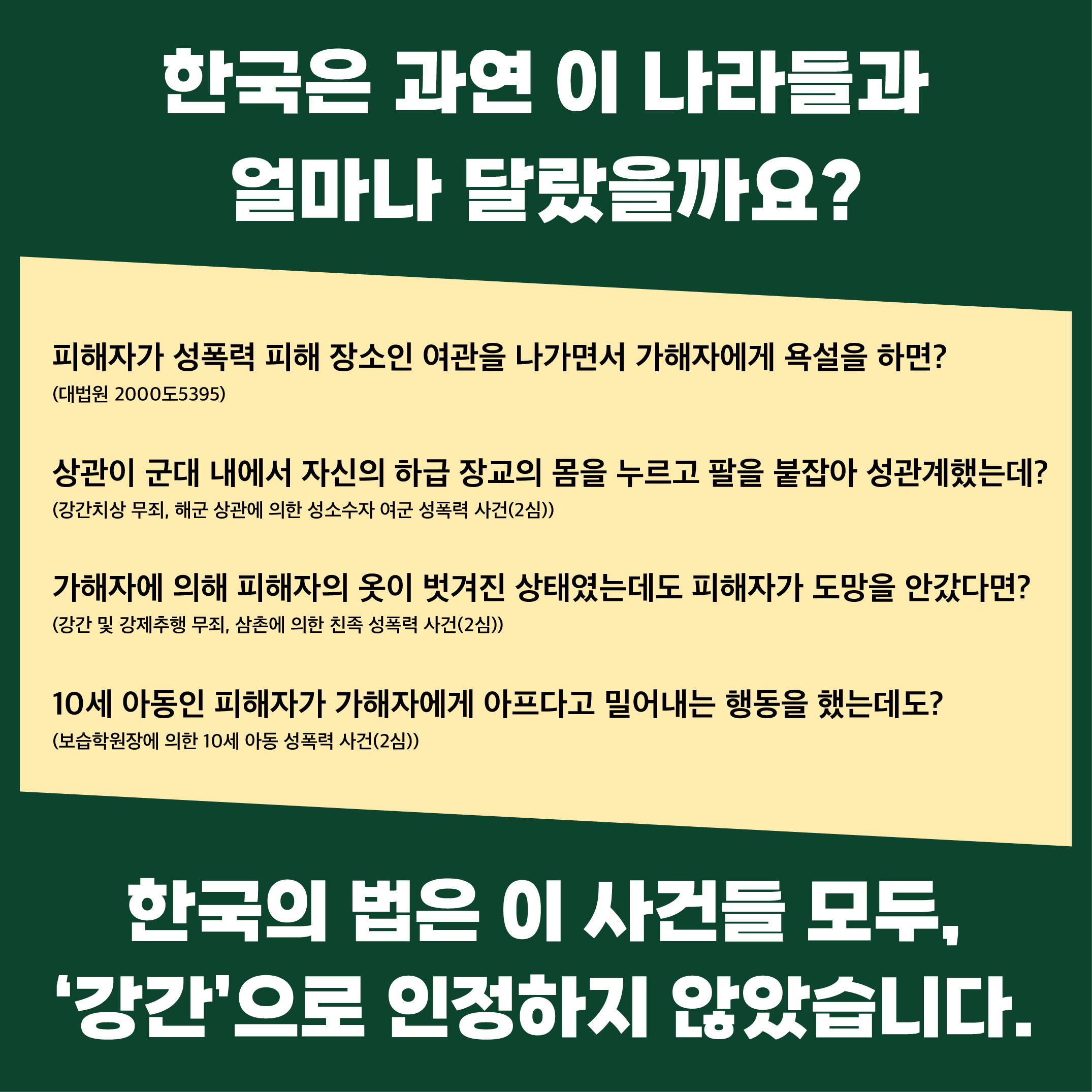 한국의 법은 이 사건들 모두, '강간'으로 인정하지 않았습니다.