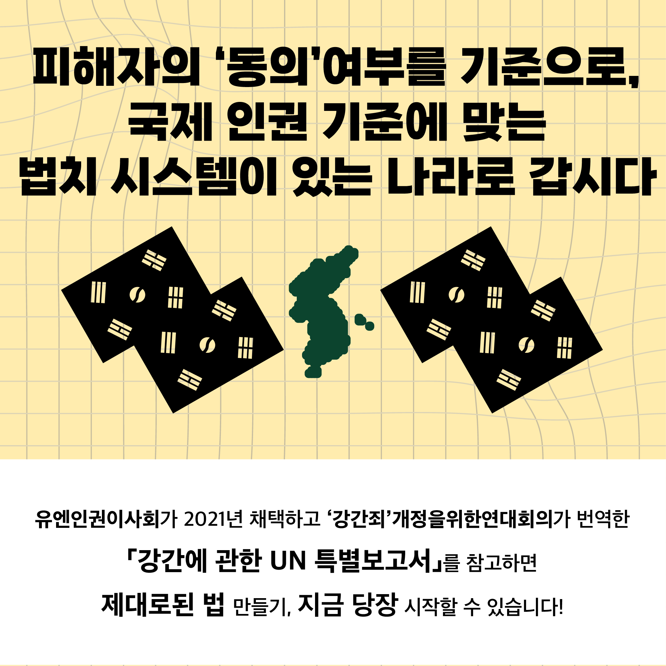 피해자의 '동의' 여부를 기준으로, 국제 인권 기준에 맞는 법치 시스템이 있는 나라로 갑시다