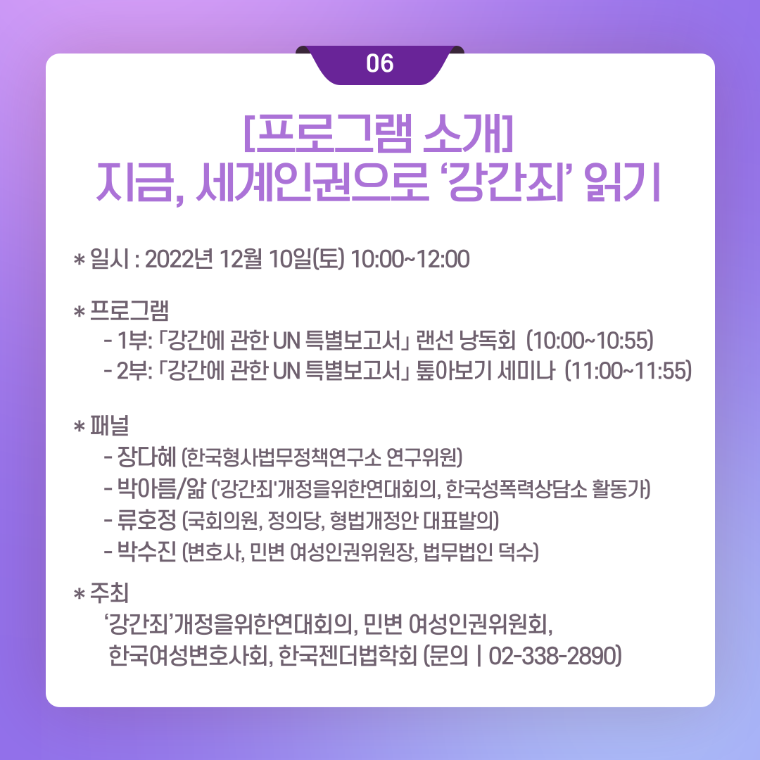 [온라인낭독회(2022.12.10.)][세계인권선언 74주년] 지금, 세계인권으로 ‘강간죄’ 읽기
