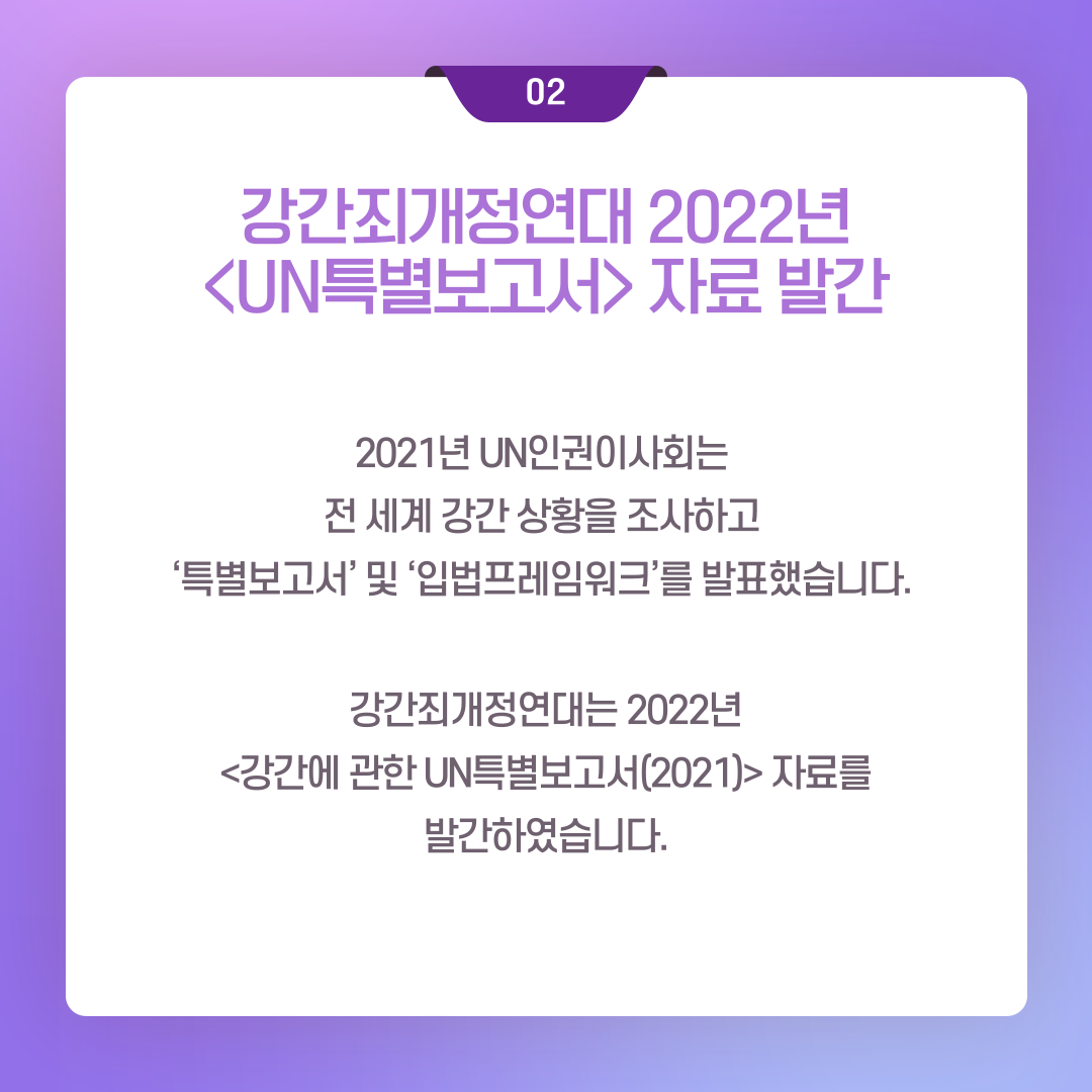강간죄개정연대는 2022년 <강간에 관한 UN특별보고서(2021)>자료를 발간하였습니다.