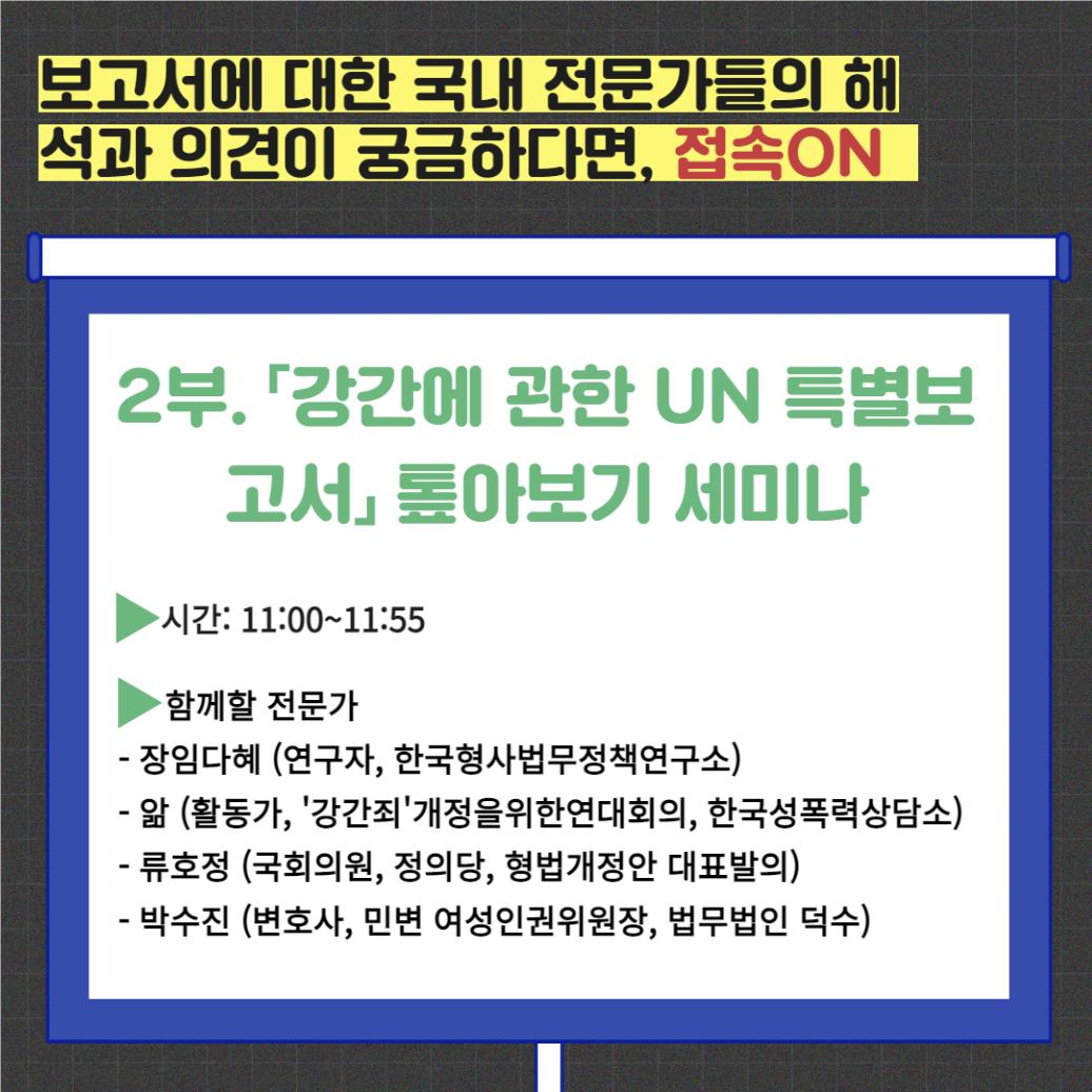 - 2부 : 「강간에 관한 UN 특별보고서」 톺아보기 세미나 (11:00~11:55)
